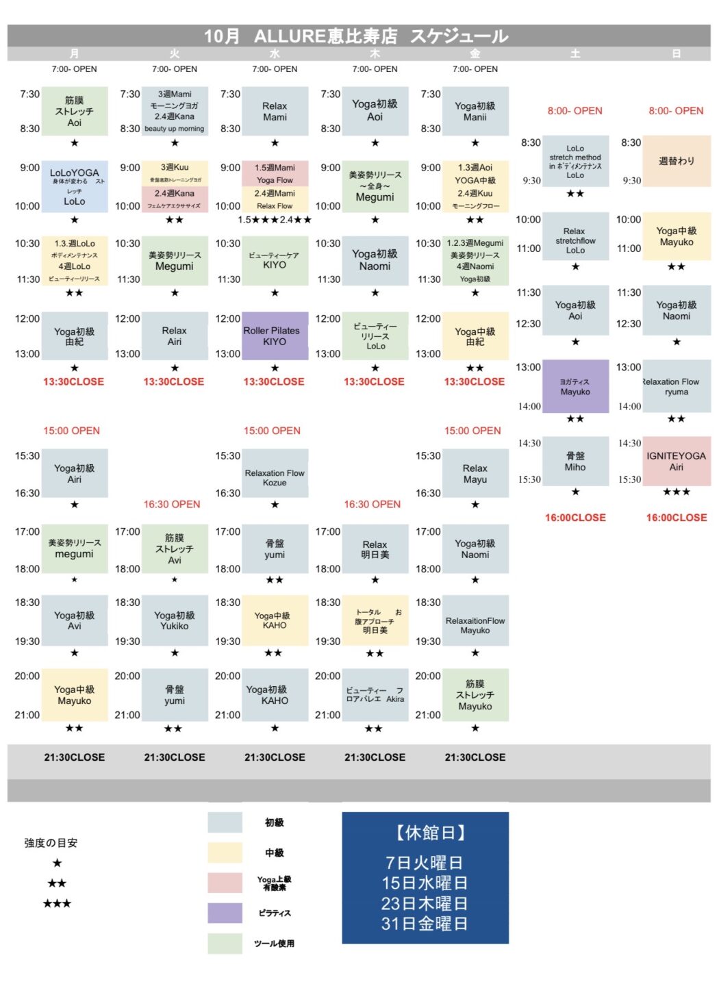 10月のスケジュールを公開しました。ご予約お待ちしております。