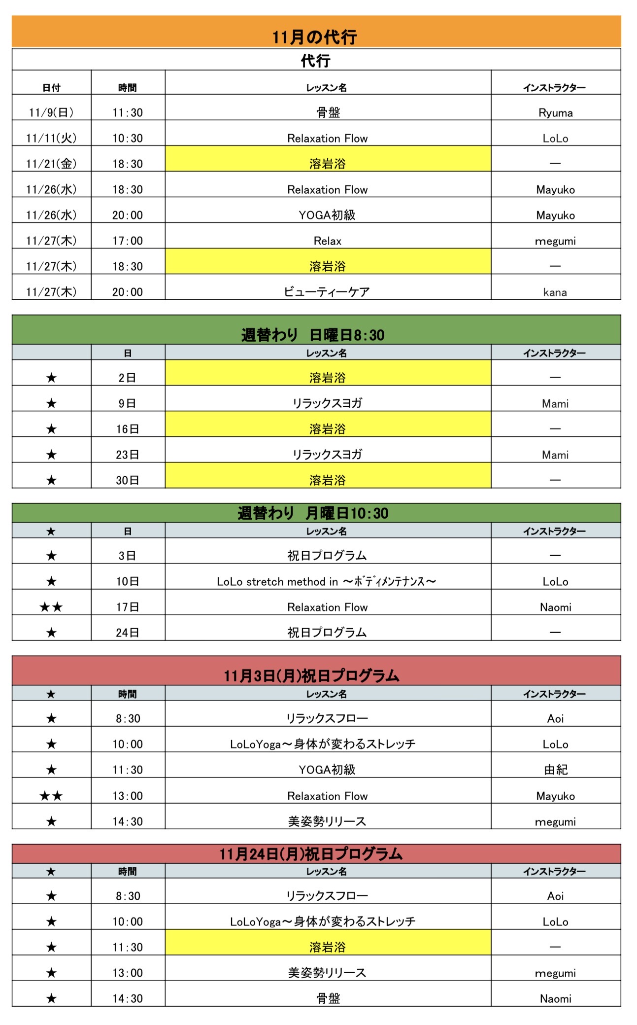 11月の代行と週替わりスケジュールを公開しました。ご予約お待ちしております。