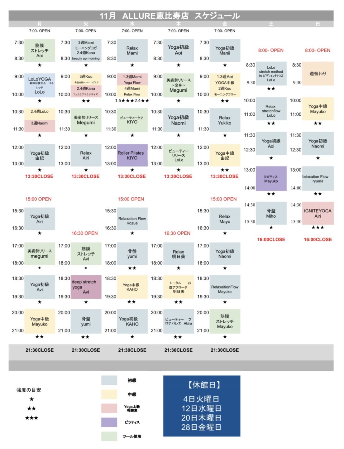 11月のスケジュールを公開しました。ご予約お待ちしております。