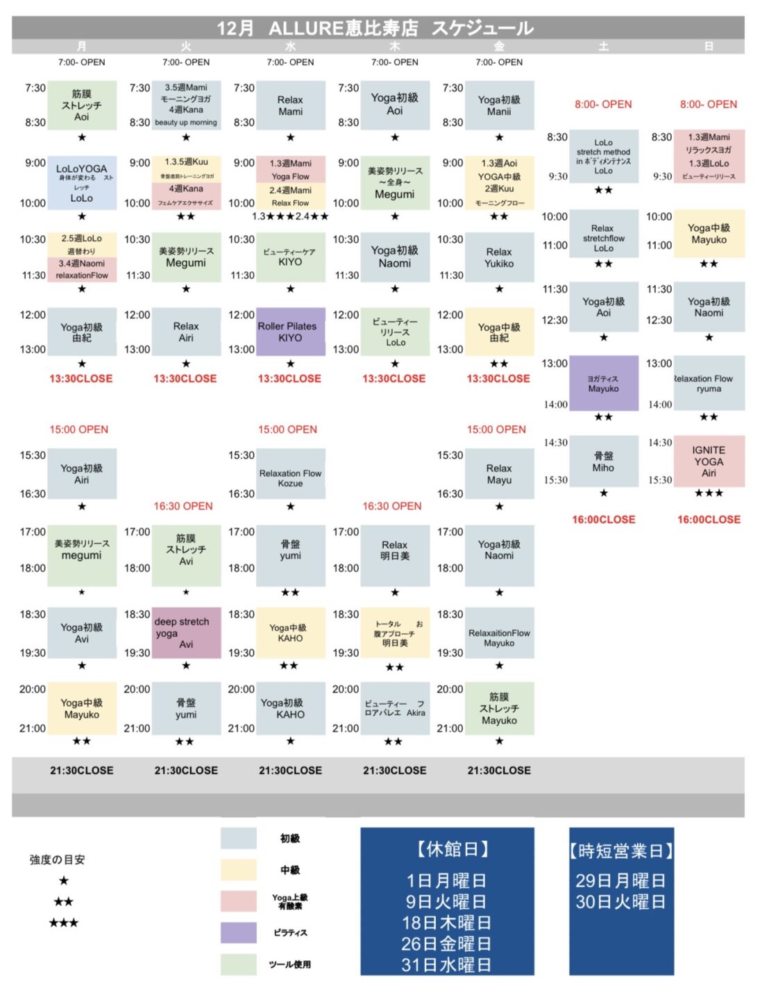 12月のスケジュールを公開しました。ご予約お待ちしております。
