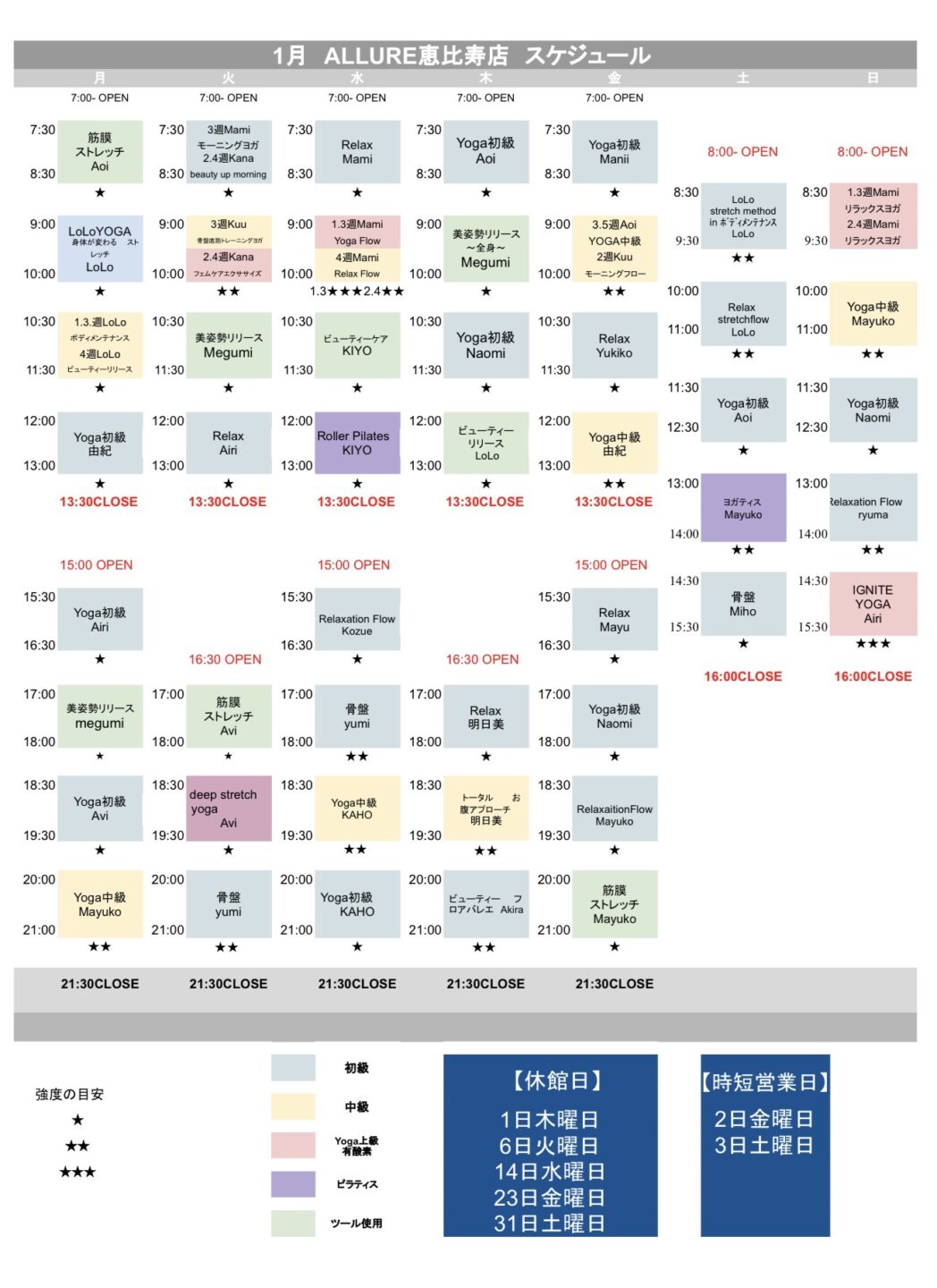 1月のスケジュールを公開しました。ご予約お待ちしております。