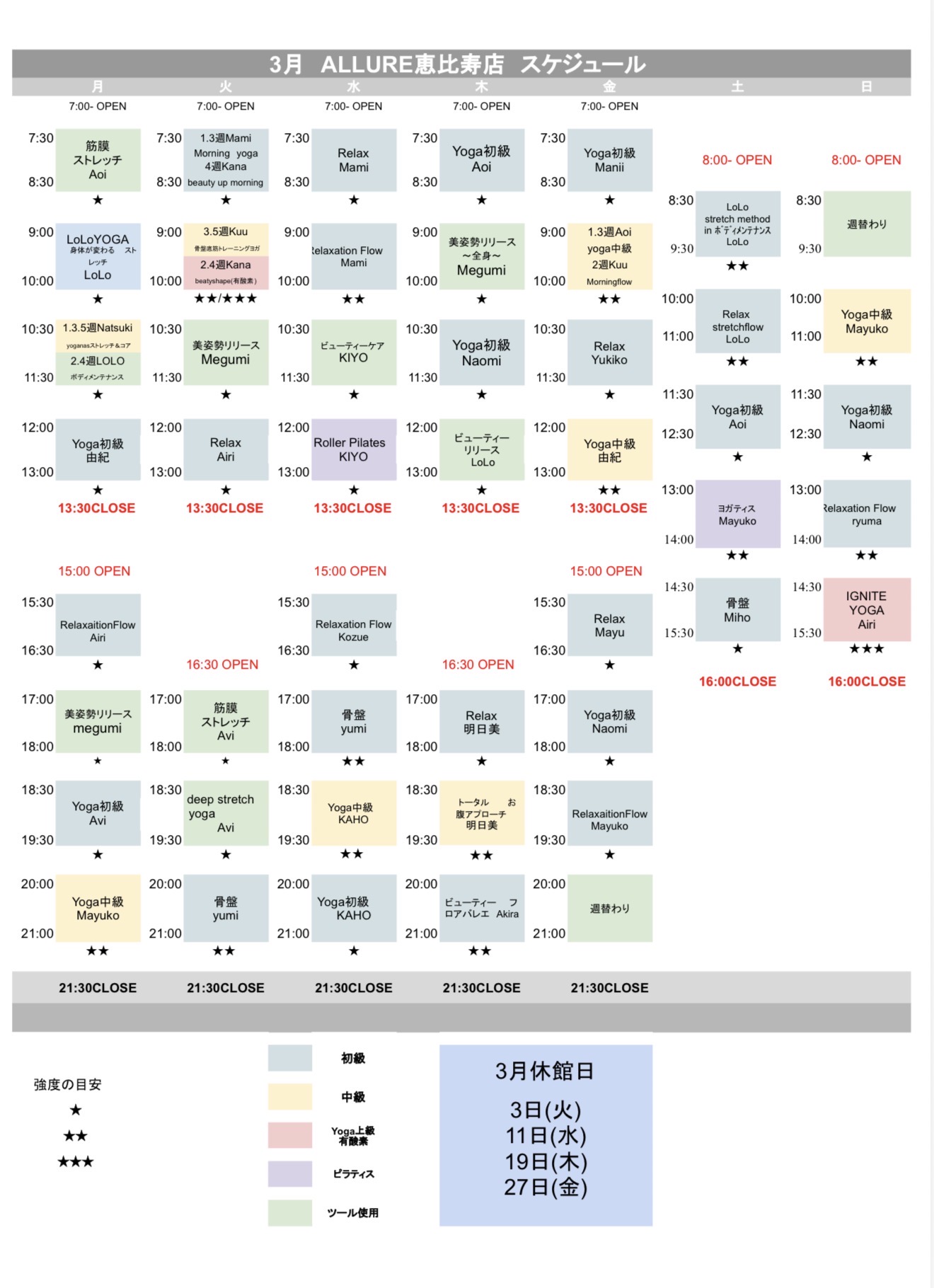 3月のスケジュールを公開しました。ご予約お待ちしております。