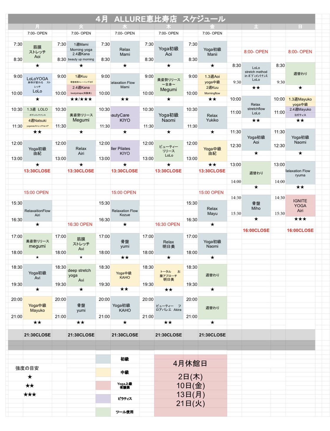 4月のスケジュールを公開しました。ご予約お待ちしております。