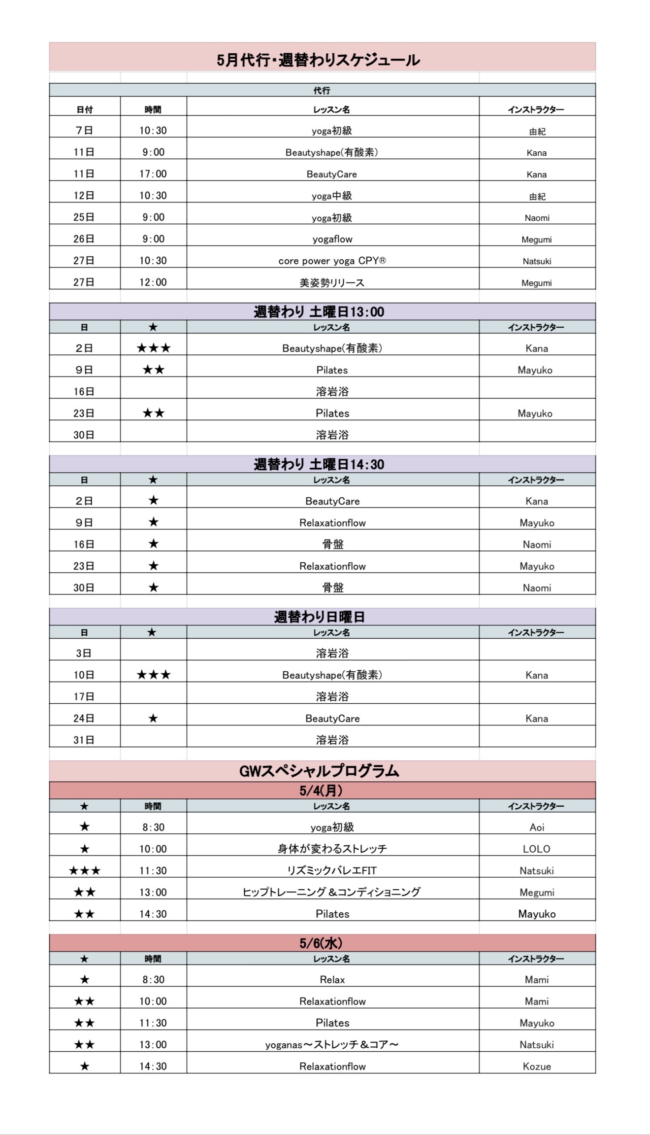 5月の代行と週替わりスケジュールを公開しました。ご予約お待ちしております。
